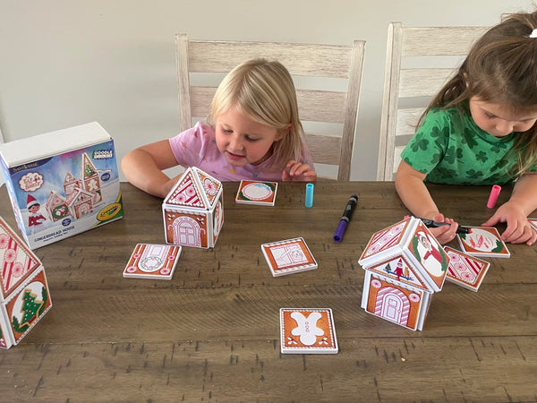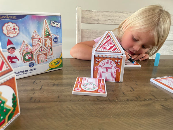 CreateOn Crayola Elf on The Shelf Gingerbread House - Magnetic Building Tiles Kit with Crayola Markers, Christmas Holiday Craft Toy, 33-Piece Magnetic Construction & Coloring Set for Kids